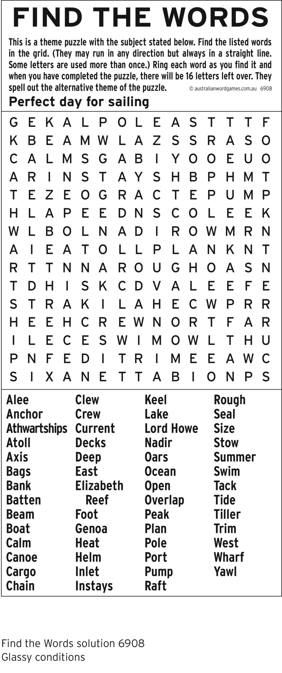 A daily wordfind with a new subject for each puzzle. Circle each word as you find it listed in the grid. Words may run in any direction, but will always be in a straight line. Keep in mind that one letter may be use multiple times.